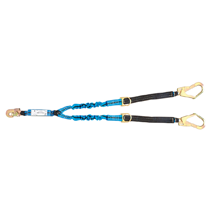 COLA DE AMARRE ANTICAÍDA ELASTIZADA DOBLE 1.8 M CON AMORTIGUADOR Y MOSQUETONES DE 55MM Y ARGOLLAS FLOTANTES