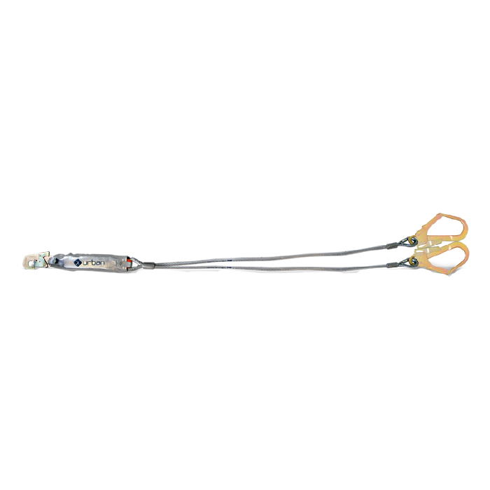 COLA DE AMARRE ANTICAÍDA DOBLE 1.5M EN CABLE DE ACERO CON AMORTIGUADOR Y MOSQUETONES DE 18 Y 55MM