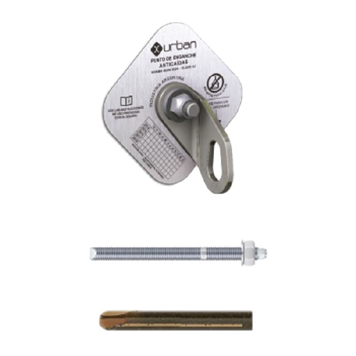 KIT PUNTO FIJO DE ENGANCHE ANTICAIDA + PLACA DE INSPECCION + ELEMENTOS DE INSTALACION (ANCLAJE QUIMICO)