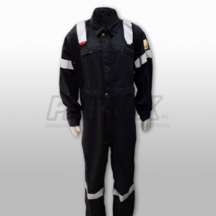 Mameluco confeccionado en tela DuPont™ NOMEX®, cosido con hilo ignífugo. Reflectivo ignifugo gris de 5 cm. en contorno de brazos, piernas y sobre los hombros, permitiendo una mayor visibilidad de diversos ángulos. Abrigo guata auto extinguible de 150gr/m2. Interior en sarga 6.0 oz con mattelasse. Costuras interiores con puntada de seguridad, doble pespunte en costuras exteriores y atraques en bolsillos y cartera. Dos bolsillos superiores tipo plaqué con tapa y broche metálico. Dos bolsillos inferiores tipo bolsa. Elástico en la cintura. Espalda con canesú. Mangas con puños con broches metálicos. Cierre metálico doble guía en el frente y tapa cierre con cartera y broches metálicos.