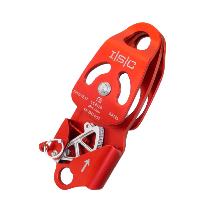 POLEA DOBLE DE ALUMINIO CON RODAMIENTOS ANTI-RETROCESO Y BLOQUEADOR PARA SOGA DE 11 a 13mm “ISC”